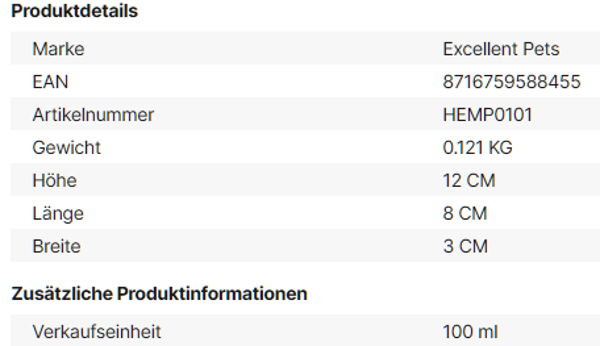 Excellent Pets HempOne + Omega Oil ist ein Ergänzungsfuttermittel für Hunde und Katzen in flüssiger Form. Es unterstützt die Gelenke und eine optimale Darmfunktion, wirkt sich positiv auf die allgemeine Gesundheit aus und trägt zu einem glänzenden Fell bei.