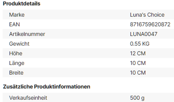 Fütterungsempfehlung: Als Snack oder Belohnung verabreichen. Beaufsichtigung beim Fressen wird empfohlen. Immer frisches Trinkwasser bereitstellen.